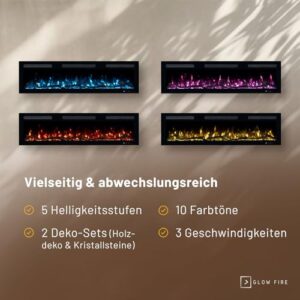 - MAXIMAL FLEXIBEL - Kreieren Sie Ihr ganz individuelles LED Kaminfeuer mit Flammeneffekt: 10 Farben, 3 Stufig einstellbare Flammengeschwindigkeit, 5 Helligkeitsstufen und 2 enthaltene Deko-Varianten!