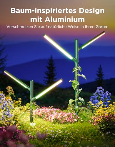 - Naturinspiriertes Design: Die aus hochwertigem Aluminium gefertigte Govee Outdoor Gartenlampe ist in Form von Ästen gestaltet, fügt sich auf natürliche Weise in Ihren Garten ein und dient als dekorative Verzierung, auch wenn die Lichter tagsüber nicht eingeschaltet sind.