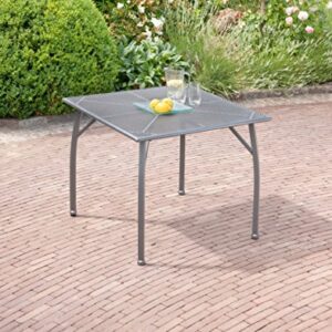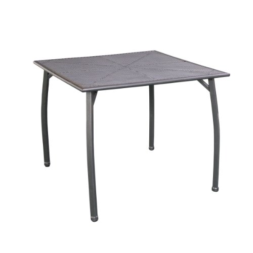 - Outdoor-Tisch aus kunststoffummanteltem Stahl – mit einer eckigen Tischplatte in Gitteroptik und geschwungenen Beinen in Eisengrau