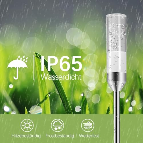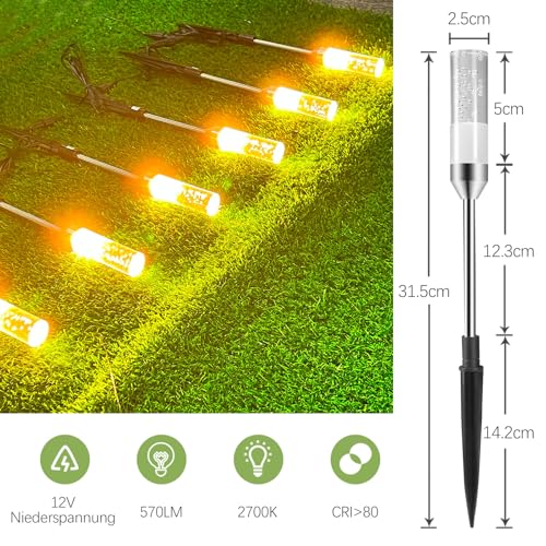 - Superhelles Licht & Energieeinsparung: Diese Gartenleuchte mit erdspieß verwendet 0.8W 2835 LED Lampenperlen, kombiniert mit hochdurchlässigen Acrylzylinder, sie kann 95 Lumen Helligkeit erreichen, insgesamt 570 Lumen. 2700K warmes Licht, CRI ≥ 80. Die Gesamtleistung benötigt jedoch nur 4,8W, was energiesparender und umweltfreundlicher ist