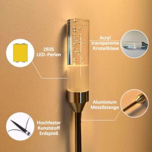 - Blasen-Design & Aluminiumstange: Der transparente Lampenzylinder der Gartenlampe enthält winzige Blasen, die einen einzigartigen visuellen Effekt erzeugen, perfekt geeignet für Gärten, Höfe, Wege, Rasenflächen, Treppen, Einfahrt, Blumenbeete, Halloween, Weihnachten usw. als dekorative Beleuchtung. Die Gartenlampe verwendet eine Aluminiumstange, die sowohl leicht als auch robust und langlebig ist und eine gute Wärmeleitfähigkeit bietet, was die Lebensdauer der Gartenlampe erheblich verlängert