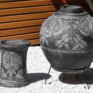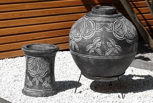 Großer Terrassenofen – original Aztekenofen aus Mexico – Zweiteiliger Terracotta Holzofen – tolle Feuerstelle für Terrasse und Garten