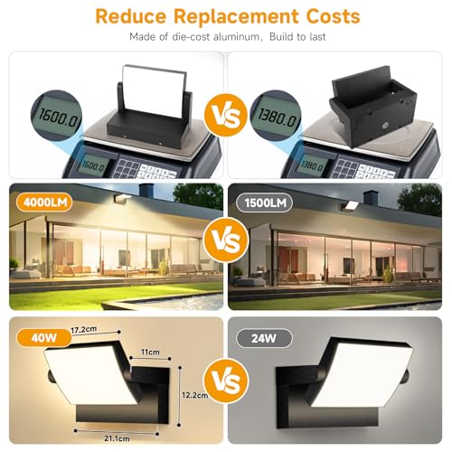 - Ultrahohe Helligkeit: 40 Watt Wandlampe Aussen, 108 hocheffiziente LED-Perlen, Helligkeit 4000 Lumen, beleuchten Sie Ihren Heimweg, sorgen Sie für sicheres Licht für Ihren Nachtspaziergang oder andere Aktivitäten. Geeignet für Installationshöhen von 3 m bis 10 m.
