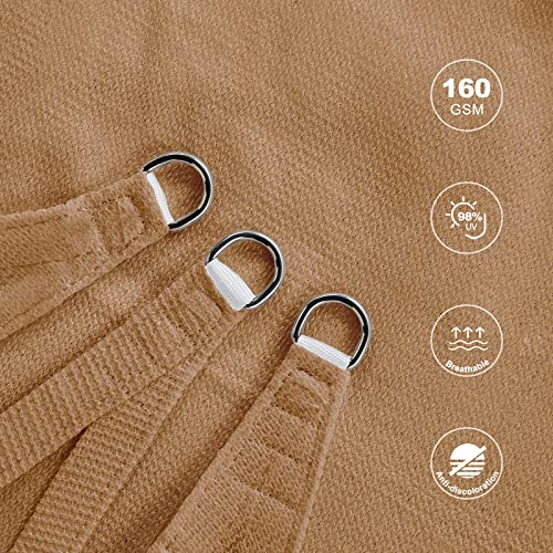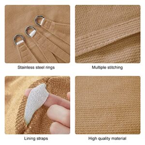 - Hohe Qualität - Das sonnensegel besteht aus 185 g/qm polyethylen hoher dichte (HDPE) (nicht gespleißt). Es hat die eigenschaften hoher Zugfestigkeit. Alterungsbeständigkeit, Korrosionsbeständigkeit und Strahlungsbeständigkeit. Für bessere Reißfestigkeit wird an den Ecken 60cm langes, 18g dickes Band genähnt. An jeder Ecke gibt es langlebige D-Ringe aus Edelstahl 304, diese wurden für eine hervorragende Stabilität extra mehrfache quer vernäht.