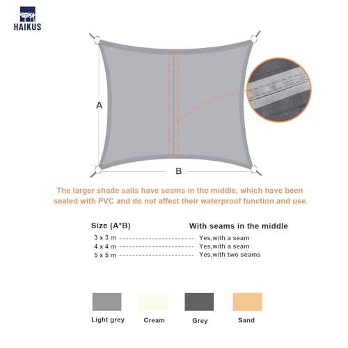 - Einfach zu Installieren - HAIKUS PES Sonnensegel mit Seile lässt sich einfach und schnell motieren.Lassen Sie zwischen dem Befestigungspunkt und dem Sonnensegel einen Abstand von 30 bis 45 cm. Wasserdichtes Sonnensegel muss in Winkel von 20 bis 40 Grad installiert werden, damit das Wasser ablaufen kann. Jedes Sonnensegel muss regelmäßig nachgespannt werden.