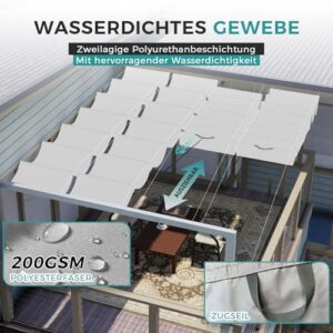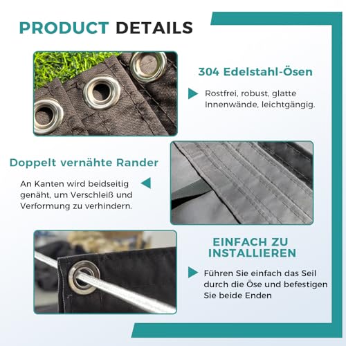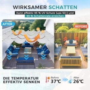 - HOCHWERTIGES GEWEBE - Genießen Sie Ihren angenehm kühlen Außenbereich! Robustes 200g/m² Polyester-Material mit wasserabweisender Funktion, atmungsaktiv, reißfest und witterungsbeständig. Bietet 95%igen UV-Schutz – so bleibt jeder sicher im Freien, ohne sich um schädliche Strahlen sorgen zu müssen
