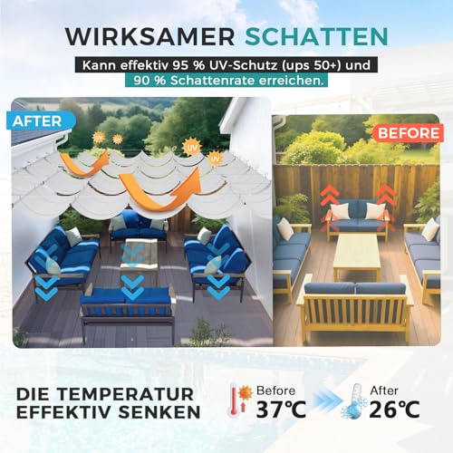 - DEIN GARTEN, EINE WUNDERSCHÖNE OASE - Das innovative U-förmige Design bietet nicht nur effektiven Sonnenschutz, sondern verleiht Pergolen oder Hofbereichen eine stilvolle Atmosphäre. Perfekt für Outdoor-Aktivitäten - ideal für gesellige Partys oder entspannte Ruhepausen im Schatten. Die ideale Beschattungslösung für Pavillonrahmen, Terrassen, Balkone und Gartenbereiche