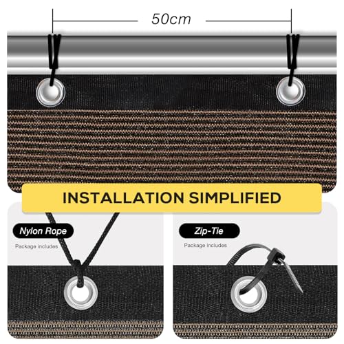 - VERSTÄRKTE WIDERSTANDSFÄHIGKEIT - Doppelte Ringe in jeder Ecke unseres Sonnenschutzstoffs sind so konstruiert, dass sie selbst die stärksten Winde aushalten können, bis zu 50 kmph. Diese zusätzliche Verstärkung stellt sicher, dass Ihr Schirmstoff straff und sicher bleibt, um zuverlässigen Schutz von Saison zu Saison zu bieten.
