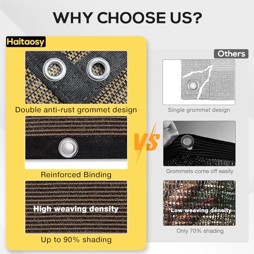 - VERSTÄRKTE WIDERSTANDSFÄHIGKEIT - Doppelte Ringe in jeder Ecke unseres Sonnenschutzstoffs sind so konstruiert, dass sie selbst die stärksten Winde aushalten können, bis zu 50 kmph. Diese zusätzliche Verstärkung stellt sicher, dass Ihr Schirmstoff straff und sicher bleibt, um zuverlässigen Schutz von Saison zu Saison zu bieten.