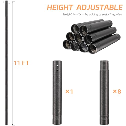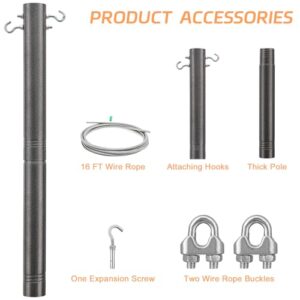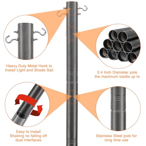 - Starke und rostfreie Stangen: Dieser Sonnensegelmast ist aus strapazierfähigem Metall gefertigt, das schlechten Wetterbedingungen widerstehen kann und niemals rostet. Die dicke Stange ist wind- und korrosionsbeständig, das Drahtseil hält die Stange stabil und die zwei Haken erlauben es, mehr Seil aufzuhängen
