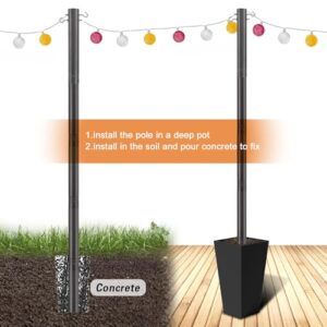 - Zwei Möglichkeiten zur Installation: Erstens: Graben Sie ein Loch 2ft oder 3ft tief und gießen Sie Beton und Zement in die Hacke, wenn der Beton trocken ist, können Sie die Markise oder Lichterketten hängen. Zweitens: Sie können diesen Mast in ein tiefes, großes Becken stellen und den Zement in das Becken gießen, um den Mast stabil zu halten. (Bitte nicht auf Deck oder weichem Boden verwenden!)