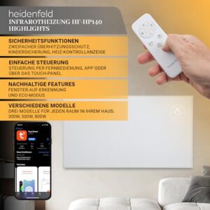 - 𝐋𝐢𝐞𝐟𝐞𝐫𝐮𝐦𝐟𝐚𝐧𝐠 📦 Im Set enthalten: Infrarotheizung HP140, Fernbedienung, Wandhalterung, Montagematerial und Bedienungsanleitung – für eine kinderleichte Montage und sofortige Inbetriebnahme.