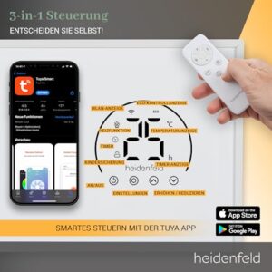 - 𝟑𝐢𝐧𝟏 𝐒𝐭𝐞𝐮𝐞𝐫𝐮𝐧𝐠 📱 Flexibel steuerbar per App, Fernbedienung oder Touch-Panel. Kompatibel mit Tuya Smart App, Smart Life App, Alexa, Google Assistant und Siri – steuere dein Raumklima bequem von überall.
