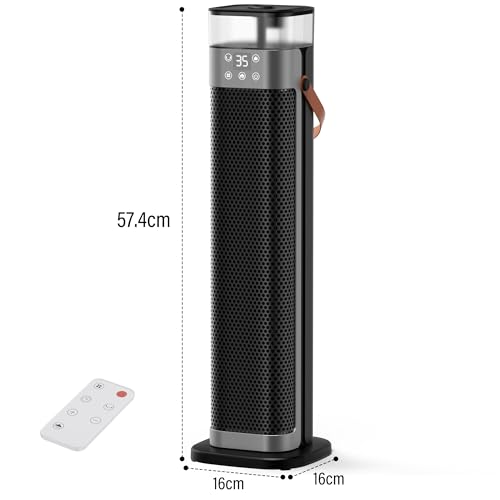- 【Einfach zu bedienen und tragbar】Berühren Sie einfach das digitale Bedienfeld, um Temperatur und Modi einzustellen, oder verwenden Sie die Fernbedienung, um alle Funktionen mühelos zu steuern. Dieser energiesparende Heizlüfter misst 16 x 16 x 57,4 cm und wiegt 1,7 kg. Auf der Rückseite befinden sich ein versteckter Griff und ein speziell entwickelter orangefarbener Griff zum einfachen Transportieren und Verstauen. Dieser energiesparende Heizlüfter kann auf dem Boden, auf einem Tisch oder unter einem Schreibtisch aufgestellt werden und eignet sich somit für verschiedene Umgebungen wie Schlafzimmer, Wohnzimmer, Büros und mehr.