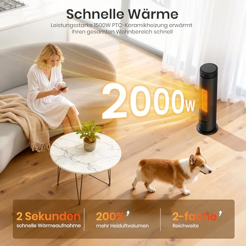 - Top-Leistung mit Energiegenuss: Der FLANUR heizlüfter energiesparend kombiniert kraftvolle PTC-Heizelemente mit 2000W Leistung, um innenräume bis zu 20 m² mit komfortabler Wärme zu versorgen. Dieser kompakte 60 cm heizstrahler eignet sich perfekt für Wohn- und Büroumgebungen – ideal für eine zielgerichtete wärmeverteilung.