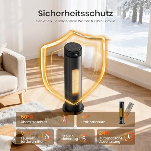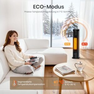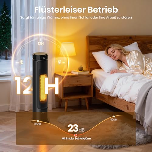 - Gehobene Benutzerfreundlichkeit: Mit fernbedienung, 1-12-Stunden-Timer und nur 23dB leise geräuschpegel setzt der keramik heizlüfter energiesparend auf stillstandkomfort. Das integrierte LED-Temperaturdisplay bietet transparenz und echtzeitkontrolle, während die kindersichere bedienung familienfrieden gewährleistet