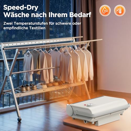 - 【2-Stufen-Wärme mit Effizienzgarantie】Wählen Sie zwischen 2000W Turbo-Aufheizung für sofortige Wärme und dem 1000W Eco-Dauerbetrieb. Mehr als nur Wärme – für schonende Wäschetrocknung und vorgewärmte Handtücher als Ihren praktischen Helfer von der Morgenroutine bis zur Haushaltspflege.