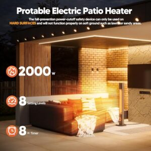 - 8-Stunden-Timer und 8 Heizstufen: Der Terrassenheizstrahler verfügt über 8 Leistungsstufen. Sie können die Heizleistung jederzeit und überall an Temperaturänderungen anpassen. Darüber hinaus können Sie dank der 1-8-Stunden-Timerfunktion Ihre Freizeit in Ruhe genießen. Outdoor-Abdeckung: Unser Produkt ist mit einer Abdeckung ausgestattet, mit der Sie das Produkt nach dem Wintergebrauch schützen können, ohne es zerlegen und lagern zu müssen.