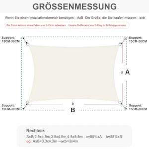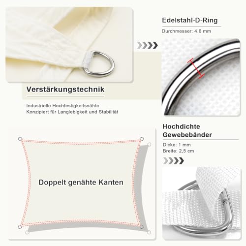 - 【Wichtiger Messhinweis für die perfekte Passform】Bitte messen Sie vor dem Kauf genau! Aufgrund des gewölbten Randdesigns ist die tatsächliche Schattenfläche leicht kleiner. Planen Sie 15-30 cm für die Befestigung ein. Handarbeit kann zu ±5 cm Abweichung führen. So vermeiden Sie Frust und garantieren die perfekte Montage.