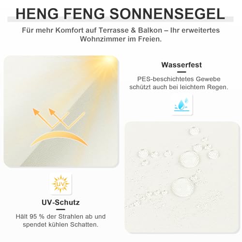 - 【Perfekter Sonnenschutz & Premium-Material】 Hochwertiges 160GSM PES-Gewebe mit wasserabweisender PU-Beschichtung. Blockiert bis zu 95% der schädlichen UV-Strahlen für einen hervorragenden Sonnenschutz von 90% und einen kühlen, geschützten Aufenthalt im Freien.