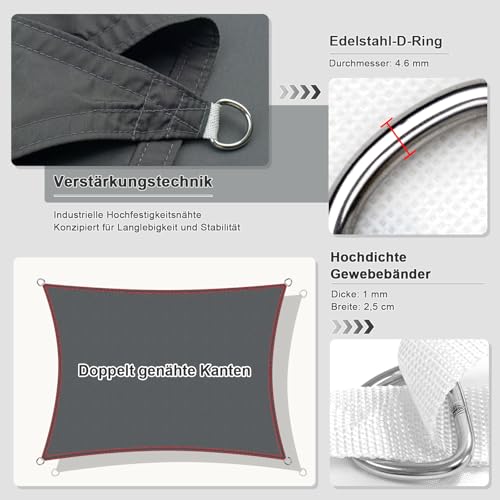 - 【Wichtiger Messhinweis für die perfekte Passform】Bitte messen Sie vor dem Kauf genau! Aufgrund des gewölbten Randdesigns ist die tatsächliche Schattenfläche leicht kleiner. Planen Sie 15-30 cm für die Befestigung ein. Handarbeit kann zu ±5 cm Abweichung führen. So vermeiden Sie Frust und garantieren die perfekte Montage.