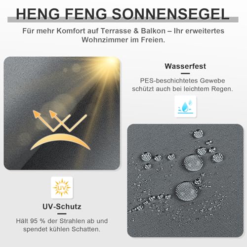 - 【Perfekter Sonnenschutz & Premium-Material】 Hochwertiges 160GSM PES-Gewebe mit wasserabweisender PU-Beschichtung. Blockiert bis zu 95% der schädlichen UV-Strahlen für einen hervorragenden Sonnenschutz von 90% und einen kühlen, geschützten Aufenthalt im Freien.