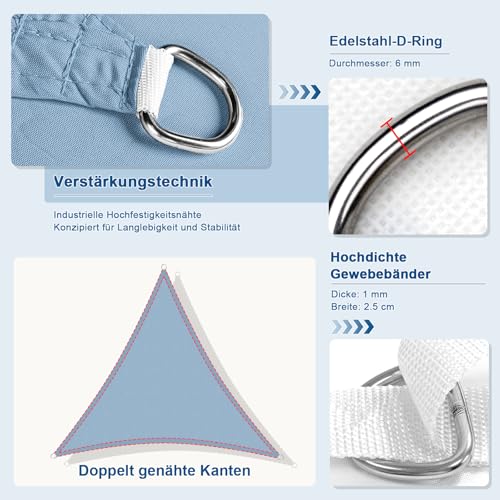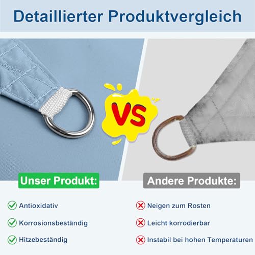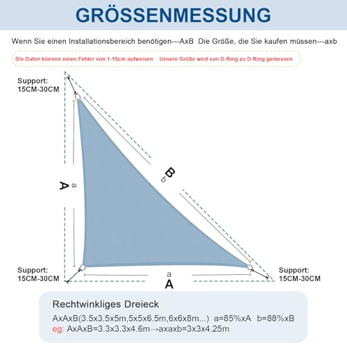 - 【Wichtiger Messhinweis für die perfekte Passform】Bitte messen Sie vor dem Kauf genau! Aufgrund des gewölbten Randdesigns ist die tatsächliche Schattenfläche leicht kleiner. Planen Sie 15-30 cm für die Befestigung ein. Handarbeit kann zu ±5 cm Abweichung führen. So vermeiden Sie Frust und garantieren die perfekte Montage.