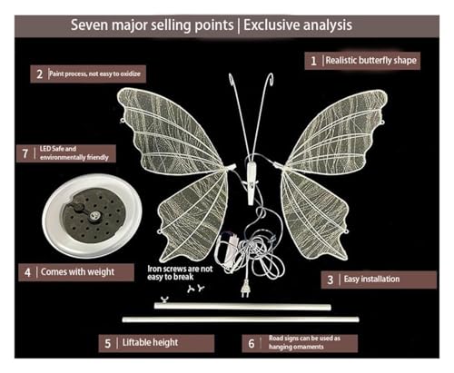 - 【Einfache Installation】Das Set enthält eine Schmetterlingslampe, einen Sockel und alle notwendigen Befestigungsmaterialien für eine schnelle und einfache Installation. Der Knopfschalter ist einfach einzustellen. Es kann aufgehängt oder auf den Boden gestellt werden, was die Einrichtung Ihrer Hochzeitsdekoration erleichtert.