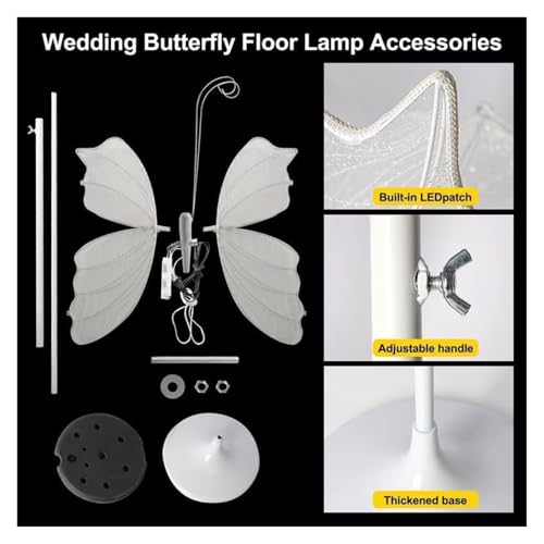 - 【Materialien】 Die Schmetterlings-Stehlampe für Hochzeit besteht aus Eisenstruktur, Spitzenstoff und LED-Streifen. Es ist mit einem eingebauten LED-Chip ausgestattet und bietet zwei Lichtoptionen: weiß oder warm. Es kann in jeder Ecke des Raums platziert werden, um eine warme und romantische Atmosphäre zu schaffen, die mit Schatten und Licht spielt.