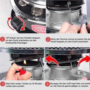 - 【Hocheffizienter Petroleumofen】: Dieser tragbare, nicht elektrische Petroleumofen for den Innenbereich verfügt über eine spezielle Metallbrennkammer, die eine vollständige Brennstoffverbrennung for schnelleres und effizienteres Heizen gewährleistet. Dieser Ölofen bietet Ihnen, Ihrer Familie und Ihren Freunden jederzeit und überall Wärme.