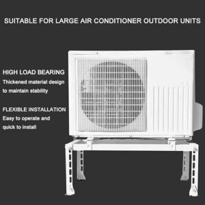 - Anpassbares Design: Dieser Mini-Klimaanlagen-Sockel verfügt über eine vielseitige, verschiebbare Querstange zur einfachen Anpassung an verschiedene Kondensatorgrößen. Prüfen Sie die Abmessungen auf Kompatibilität, um eine optimale Unterstützung Ihres Klimageräts zu gewährleisten. Die robuste Konstruktion sorgt für Stabilität und Zuverlässigkeit. Ideal zur Optimierung Ihrer Klimaanlage.