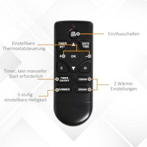 - Gemütlich und sicher: Durch die adaptive Startfunktion wählt das Heizgerät automatisch die Heizleistung des LED Kamins entsprechend der eingestellten Temperatur und der Umgebungstemperatur. Der interne Thermostat regelt die Temperatur sorgfältig zwischen 15 °C und 30 °C und schaltet sich bei Überhitzung ab.