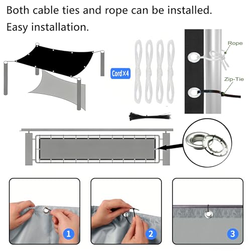 - 【Sonnensegel Einfach zu installieren】Die Montage durch die mitgelieferten Seile an Bäumen, Geländern, Wänden oder Stangen ermöglich. Die Ösen aus Edelstahl sind oben und unten im Abstand von 50 cm genäht, um maximale Stabilität zu gewährleisten. (mit vier 1,5 m langen Seilen). Schlagen Sie einen Installationswinkel von 20–40 Grad vor, so staut sich kein Wasser und kann jederzeit ablaufen