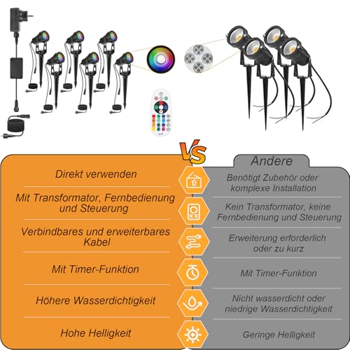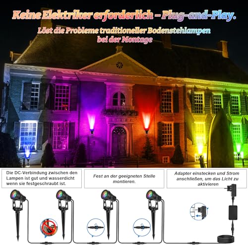 - 【Einfache Installation ohne Elektriker】 Dank des Niederspannungsdesigns und der Plug-and-Play-Funktion können die Leuchten ohne zusätzliche Werkzeuge oder Fachkenntnisse schnell installiert werden. Die Gartenbeleuchtung mit Strom bietet eine unkomplizierte Lösung für Ihre Beleuchtungsbedürfnisse und spart sowohl Zeit als auch Kosten