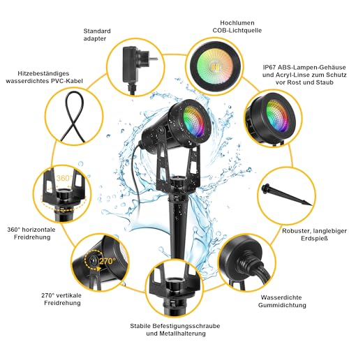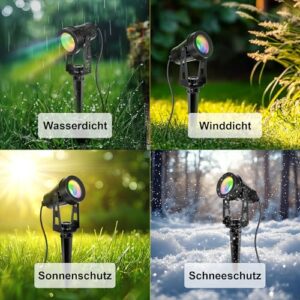 - 【Helle und stabile Beleuchtung für Ihren Garten】 Diese LED Gartenstrahler bieten eine besonders helle, stabile und gleichmäßige Beleuchtung mit 3000K warmweißem Licht. Mit einer Leistung von bis zu 1080 Lumen sind sie ideal für die Beleuchtung von Gartenwegen, Terrassen, Zäunen und Bäumen. Sie bieten eine hervorragende Kombination aus Sicherheit und dekorativem Ambiente, ohne die Anfälligkeit von Solarleuchten, die oft wetterempfindlich sind