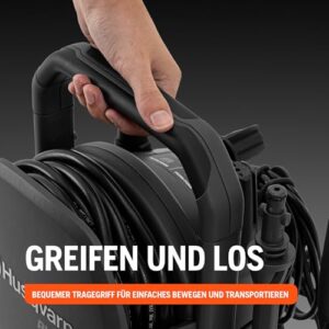 - Leistungsstarke Reinigungskraft - Liefert bis zu 130 bar Druck und 465 L/h Durchflussmenge und sorgt für eine effiziente, gründliche Reinigung von Fahrzeugen, Terrassen, Gartenmöbeln und Geräten.