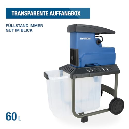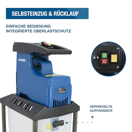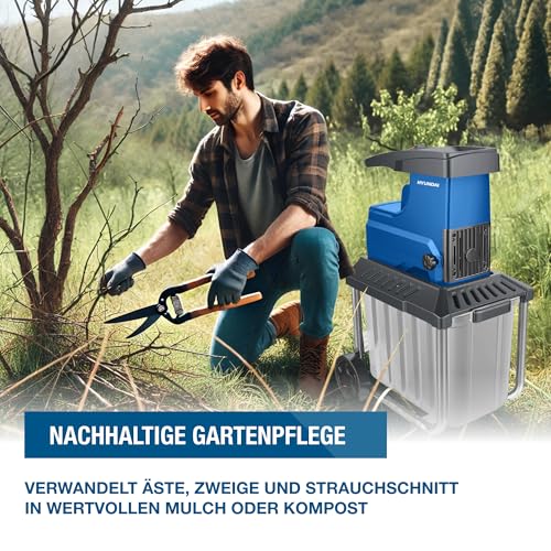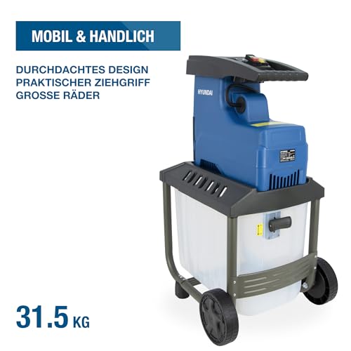- Leistungsstark und robust. Der HYUNDAI GH28045E Gartenhäcksler zerkleinert mühelos Äste bis zu 45 mm Durchmesser mit seinem kraftvollen 2.800W Motor.