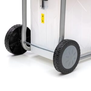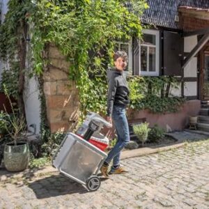 - Transport und Lagerung: Praktischer Transportgriff, robustes Fahrgestell mit Rädern, kompakte Lagerung