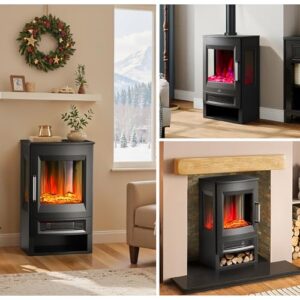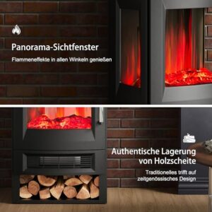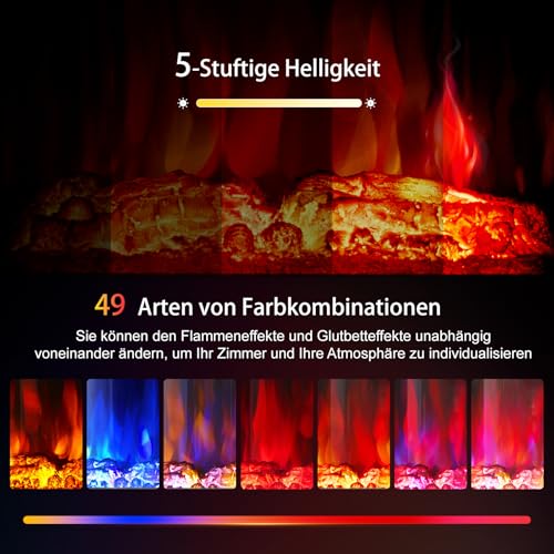 - [Multiple Funktionen]: Dieser eletrische Standkamin verfügt über verschiedene Flammenfarben und Helligkeiten, mit denen er geeignet dafür ist, Atmosphäre in Geburtstagsparty, Freundenparty, Allerheiligen, Weihnachten, Valentinstag und anderen Gelegenheiten zu schaffen. Mit Holz-Kristall-Dekorpaket kann man Flamme ohne Hitze beleuchten, deshalb ist dieser Elektrokamin perfekt für Hausdekoration und Heizung.