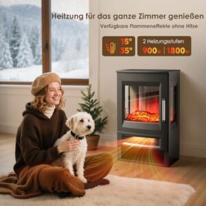 - [Energie- und stromsparend, sicher]: Dieser elektrische Kamin gibt 5120BTU an Wärme ab. 900W- und 1800W-Modis können den Bedürfnissen entsprechend eingestellt werden, um sowohl warm als auch energiesparend zu sein. Die elektronische Heizungsfläche beträgt bis zur 400 Quadratfüße, mit der dieser Elektrokamin mit Heizung ein gemütliches und geräuscharmes Zimmer in kalten Tagen schaffen kann. Außerdem schützt die thermische Sicherheitsabschaltung vor Überhitzung und die automatische Fenstererkennung schaltet das Feuer aus, wenn die Temperatur nicht ansteigt.