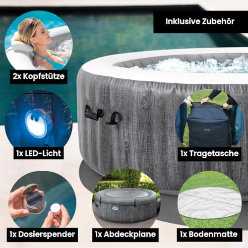 - GREYWOOD-DESIGN - Während viele aufblasbare Whirlpools eine einfache Optik haben, überzeugt der INTEX Greywood Deluxe mit seinem einzigartigen und stilvollen Holzmaserungs-Design. Verwandeln Sie Ihren Außenbereich in eine exklusive Wellness-Oase, die nicht nur entspannt, sondern auch optisch begeistert