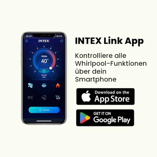 - INITIUTIVE & SMARTE STEUERUNG - Steuern Sie alle Funktionen Ihres PureSpa ganz bequem per abnehmbarem, wasserdichtem Touchscreen-Tablet oder über die innovative INTEX Link App. Dank der App können Sie Funktionen wie Heizung und Blasen von Ihrem Smartphone aus bequem aus der Ferne programmieren. Genießen Sie so maximalen Komfort und minimale Mühe, egal ob Sie im Whirlpool sitzen oder unterwegs sind