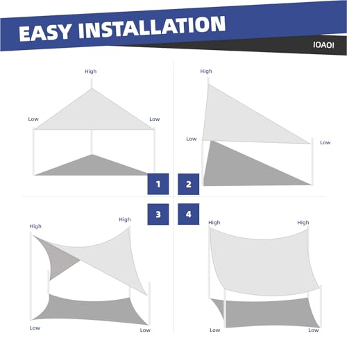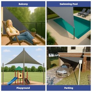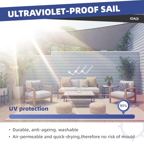 - 【Hochwertiges Sonnensegel】Sie mögen definitiv unser hochwertiges rechtwinkliges Sonnenschutz-Markisendach, das aus hochdichtem Polyester mit wasserdichter Beschichtung hergestellt ist. Es ist wasserbeständig, aber es wird immer noch nicht empfohlen, es bei starkem Regen zu verwenden. Anhaltender starker Regen kann zu angesammeltem Wasser führen und die Sonnensegel können leicht Wasser durchlassen