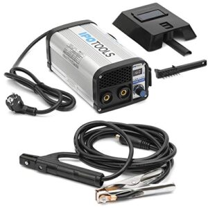 - 【 MMA-160R 】 Im Set erhalten Sie ein hochwertiges MMA-160R Inverter Schweißgerät MMA mit 160A und hoher Einschaltdauer│ 1x Massekabel mit Klemme │ 1x Schweißkabel mit Elektrodenhalter │ 1x Schweißschild │ 1x Schlackenhammer mit Bürste