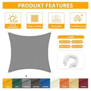 - Das quadratische Sonnendach von jarolift besteht aus wasserabweisendem Polyester. Das Gewebe ist ferner 100 % UV-stabil sowie reiß- und wetterfest