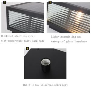 - Einfach zu installieren: Die Verpackung der Außenstehleuchte enthält eine detaillierte Installationsanleitung für eine einfache Installation. Ausgestattet mit einer Dockbefestigungsbasis kann es für die Montage an Pfosten und Bahnsteigen verwendet werden.