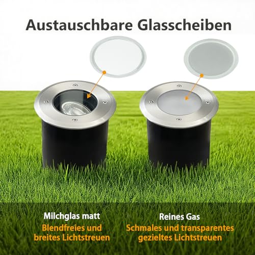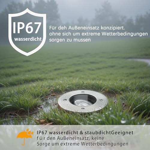 - Edelstahl 304 + IP67 Schutzklasse: Rostfreier silberner bodenleuchten für den Außenbereich mit IP67-Schutzklasse, wasserdicht und kurzzeitiger Tauchfähigkeit – sicher bei Regen oder Reinigung, verlängert die Lebensdauer. Aus hochkorrosionsbeständigem Edelstahl 304, ideal für Deutschlands regenreiches, feuchtes Klima und Streusalz im Winter. Oberflächengebürstet für ansprechende Optik, robuste Bauweise und modulares Design mit austauschbarer Lampe.