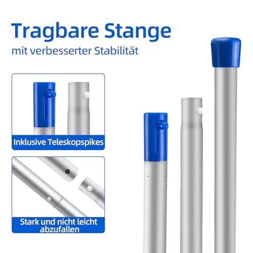 - 【 Skalierbar 】 Der Aluminiummast besteht aus fünf einzeln verbundenen Teilen, die mit allen Teilen um 161 Zentimeter verlängert werden können, oder wenn Sie ein kürzeres Teil benötigen, können Sie 1- oder 2-Teile eliminieren