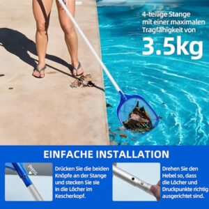 - 【Effektive Schwimmbadreinigung】 Schaufelklingen, Insekten und andere Arten von Schwimmern für Hallenbäder, Koi-Pools, Massagewannen und Brunnen. Die dicke Plastikflamme mit gebogenen Kanten bedeutet, dass es keine scharfen Flecken gibt, die die Poolwände beschädigen könnten