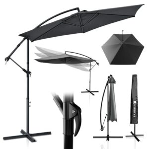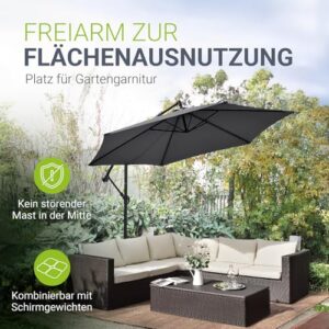 - ✔ Sonnenschutz: Der Ampelschirm (grau) mit Kurbel & Ständer ist mit seinem Durchmesser von 285 cm bei intensiver Sonne der ideale Schattenspender für Garten, Balkon oder Terrasse; mit Abspanngurten